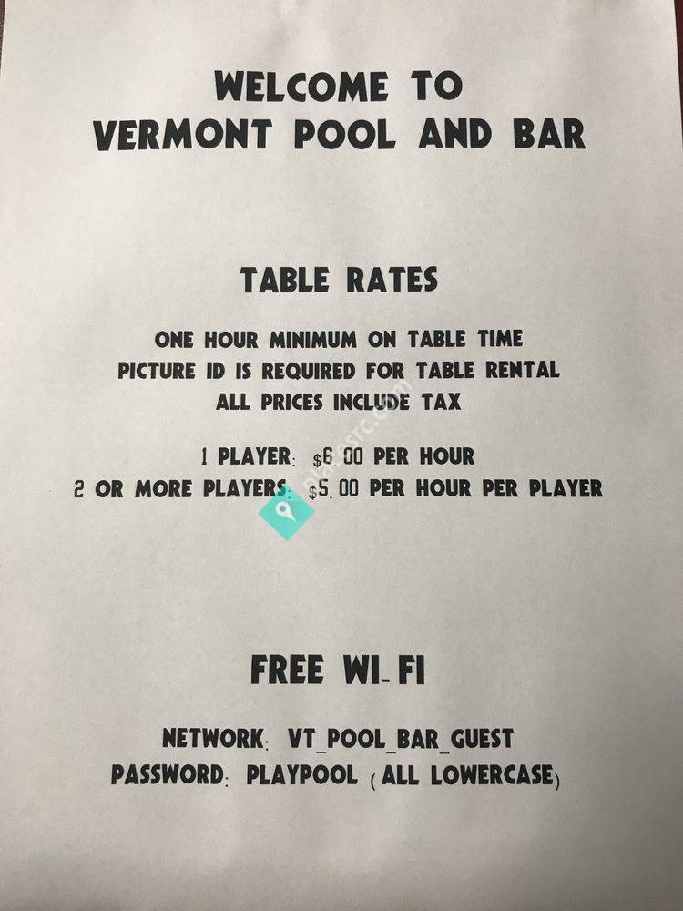 Awesome place, very clean, very Vermont. Amazing beer selection, great food. Most imp...to add Vermont Pool and Bar map to your website;